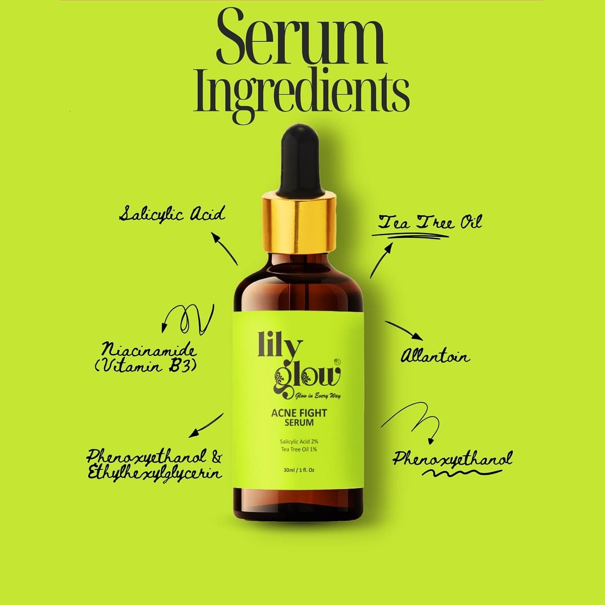 Looking for the best serum for acne scars that not only clears breakouts but also helps fade marks and refine your skin texture? Our Acne Fight Serum is a powerful anti acne serum formulated with 2% Salicylic Acid and 1% Tea Tree Oil to unclog pores, reduce acne, and promote smoother, healthier-looking skin. Enriched with Niacinamide, Glycerin, Panthenol, and Allantoin, it hydrates, soothes, and strengthens your skin barrier for long-term results.